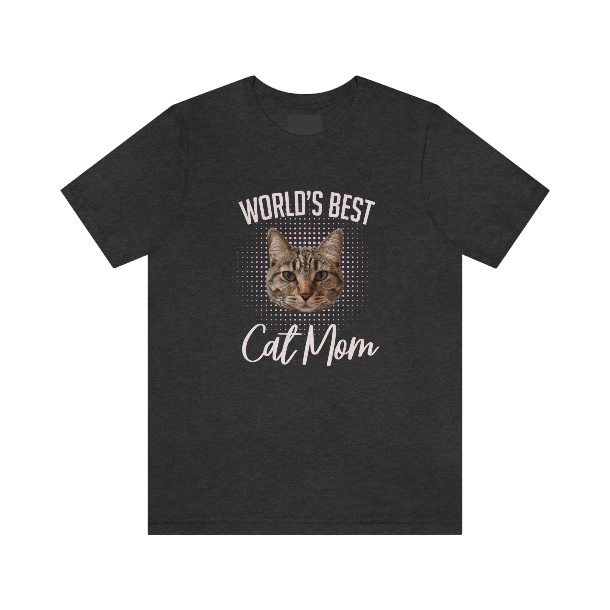 On the prowl for a personalized gift for cat moms? Look no further than the all-new World's Best Cat Mom T-Shirt! Custom printed for each cat mom, your personalized tee will feature a photo of your beloved cat's adorable face surrounded by text that reads 'World's Best Cat Mom'.