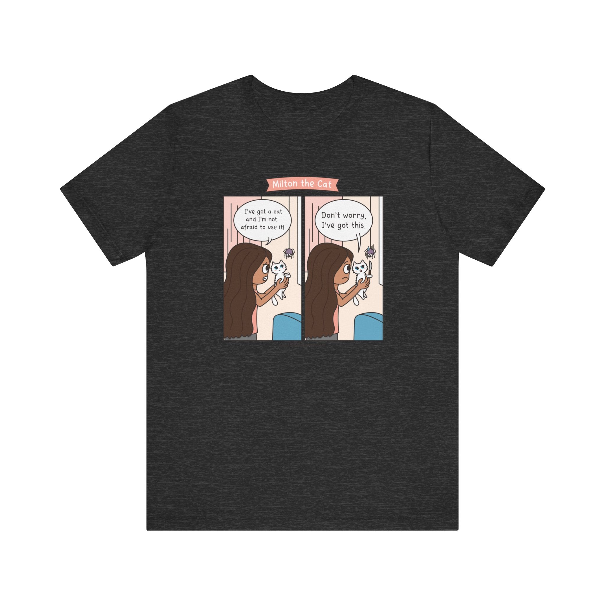 Perfect for cat lovers of all genders, whether lounging at home or out with friends. With its versatile design and comfortable unisex fit, the ExPURRminator Comic Unisex T-Shirt featuring Milton the Cat is sure to become a wardrobe staple. Available in various sizes for every body type, this shirt blends style and comfort seamlessly. Embrace your love for cats and express your unique personality.
