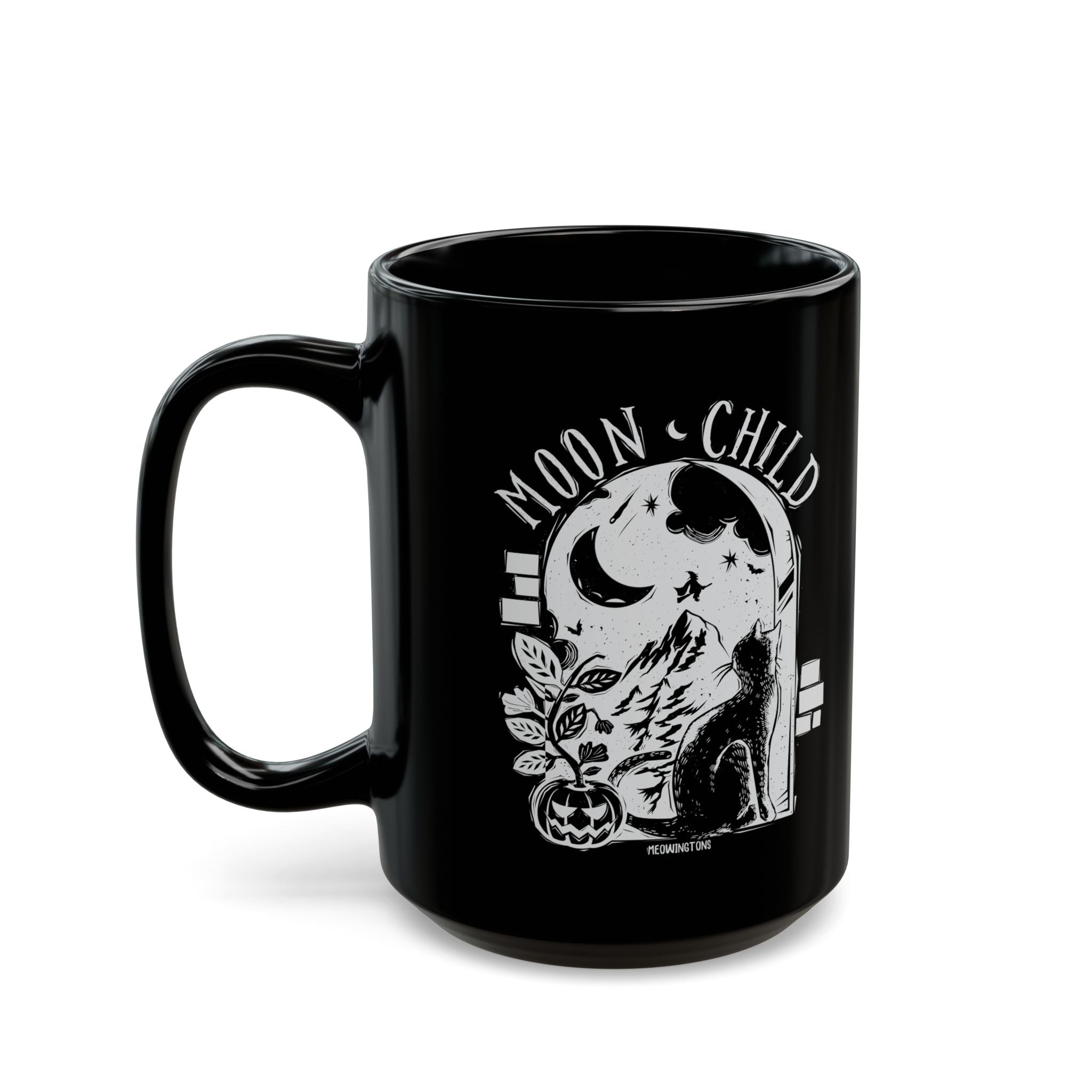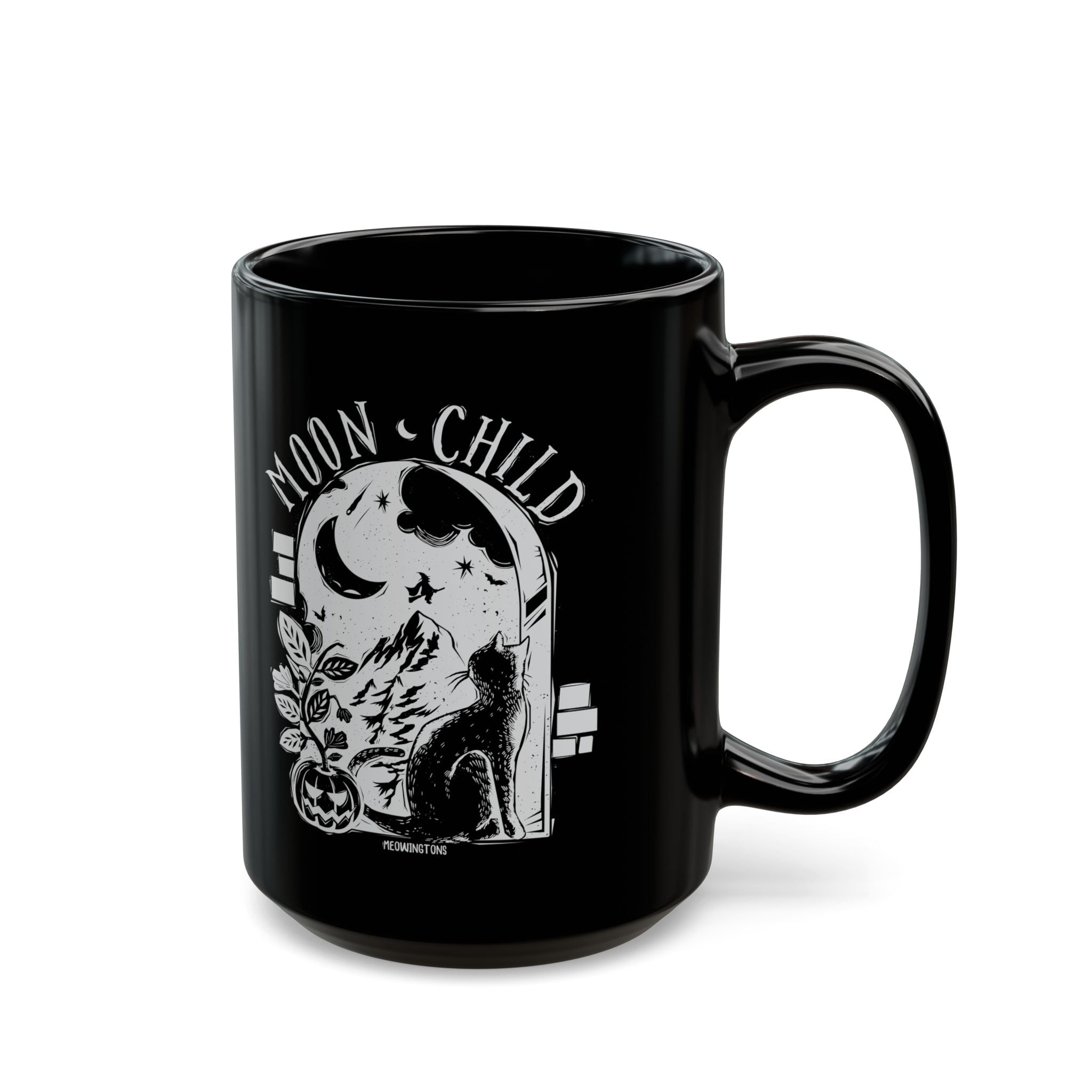 Each limited-edition Moon Child Black Cat Mug features a stargazing cat admiring a crescent moon far above. The starry night sky is filled with the spirits of Halloween, from a witch flying high on her broomstick to fluttering bats and even grinning jack-o-lantern. Get into the spirit of All Hallow’s Eve while channeling your inner Moon Child! Whether you're sipping a pumpkin spice latte to get you through the morning or brewing your favorite tea to cozy up with while you're reading your favorite scary stories. Our 15 ounce (0.44 l) Moon Child Black Cat Mug is crafted from sleek black ceramic and is dishwasher and microwave safe.